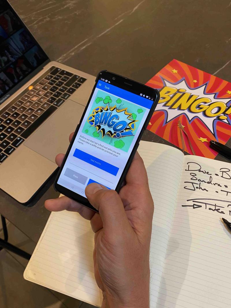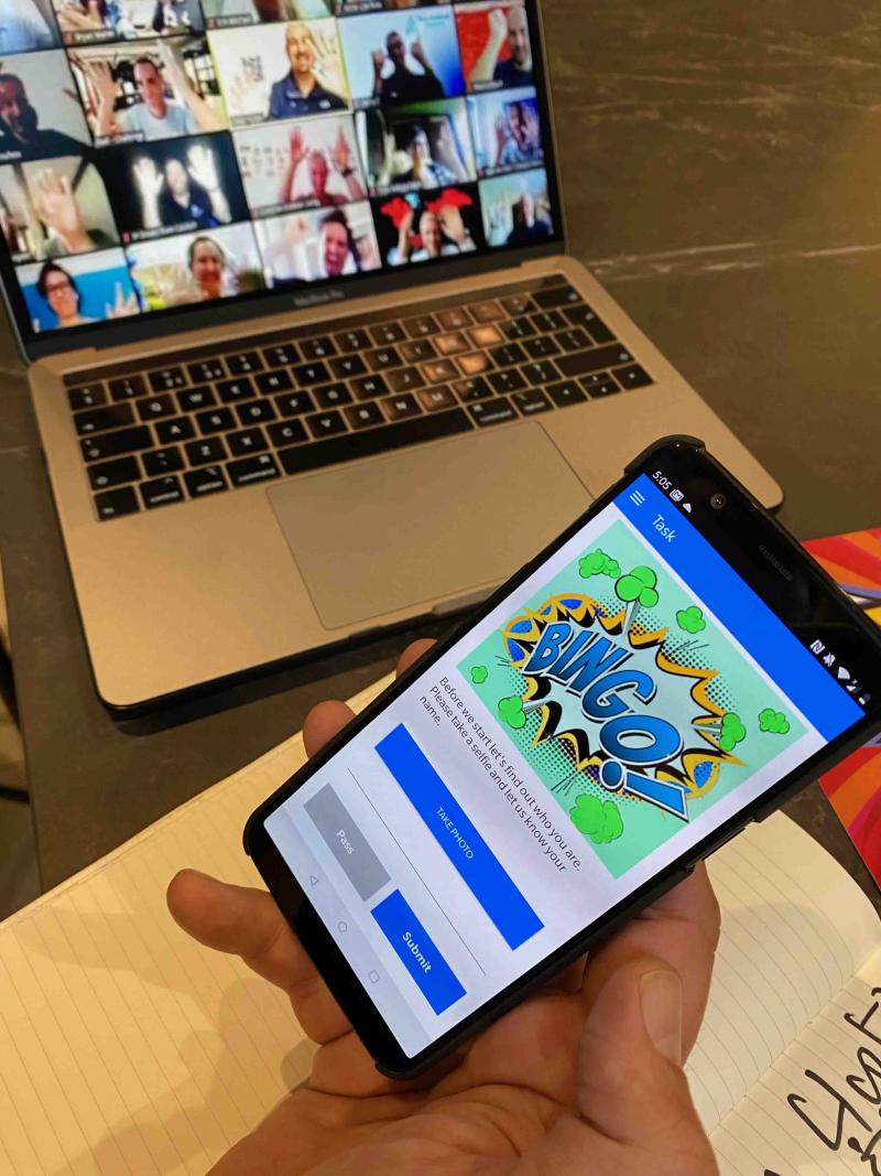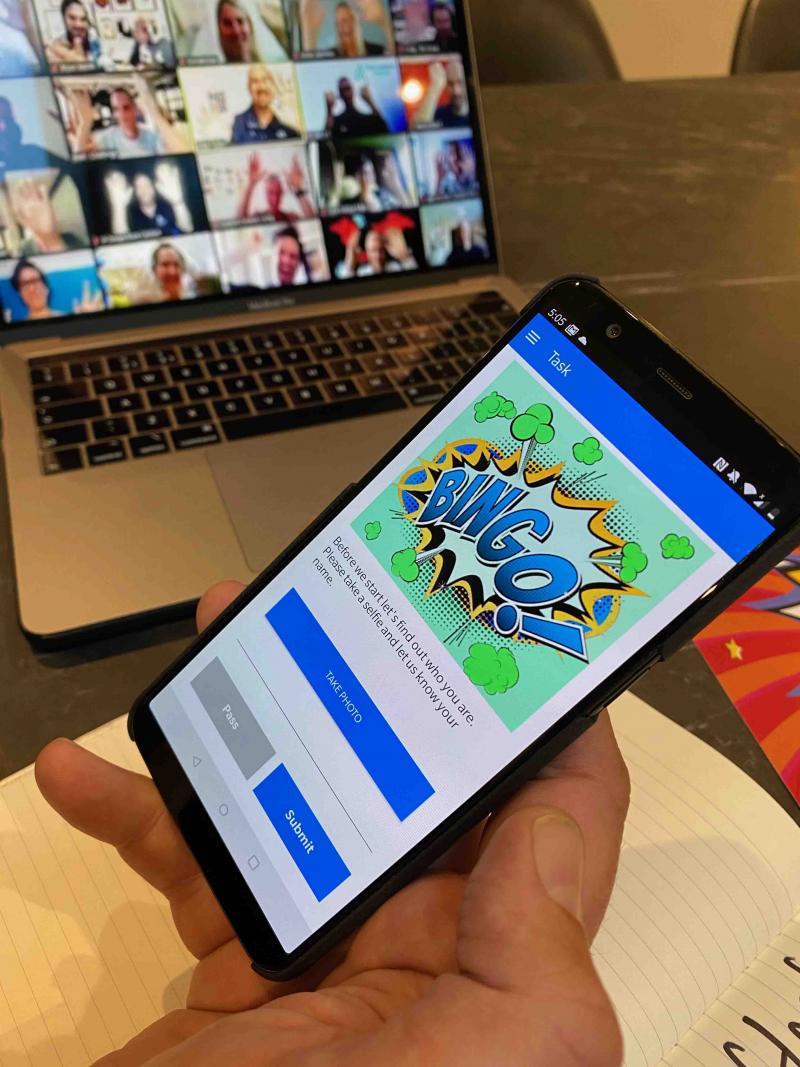 Names(answers) are entered into the interactive app. Any player can score on any questions maintaining a competitive, yet, inclusive atmosphere. After just three minutes, they enter a new breakout group, and the process starts again. After the second round, everyone comes back together to get fully energised and eager to share their latest discoveries. Further rounds see everyone connecting again in different groups and well on their to shouting BINGO!